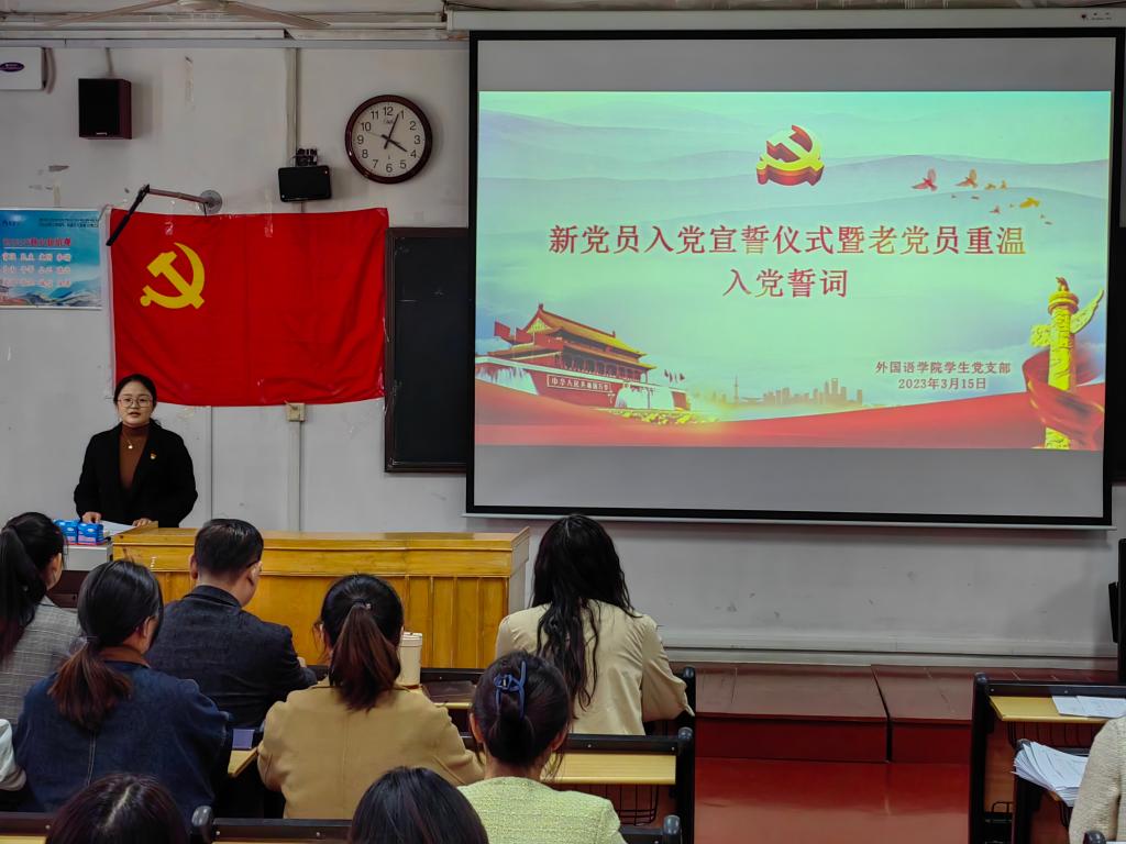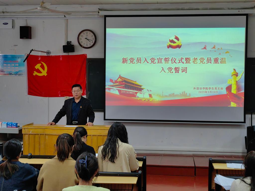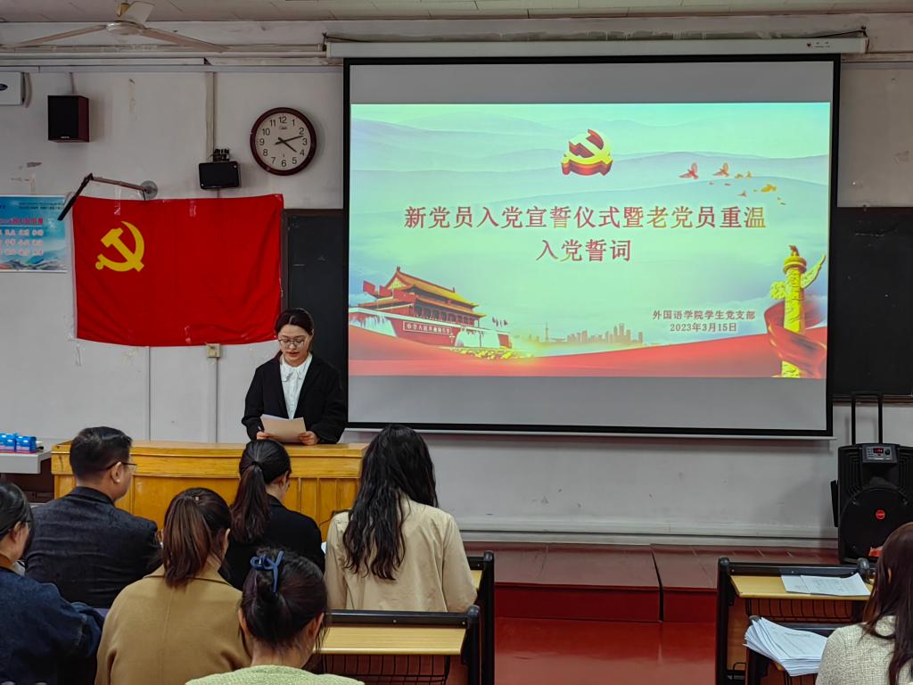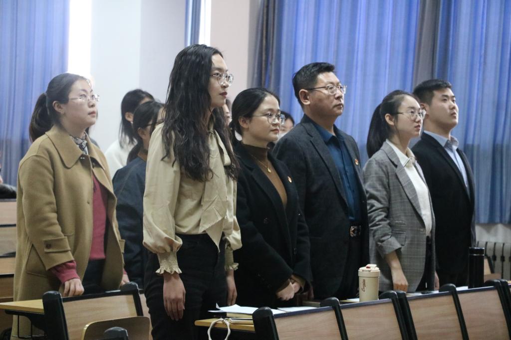 学生党支部于201室举办新党员入党宣誓仪式暨老党员重温入党誓词大会。会议由支部委员赵文彬主持,学院党委副书记王作茂莅临指导,学生党支部全体党员及入党积极分子代表参加。