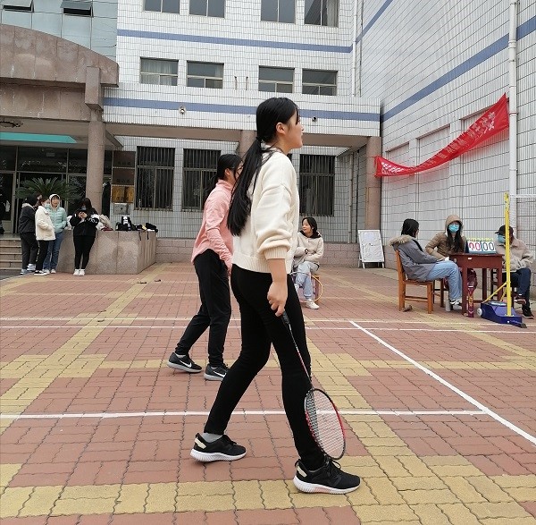 楼前羽毛球场地正式拉开序幕,本次2020级研究生团体赛共分为三场,分别是学科英语班对战外国语言文学班,外国语言文学班对战英语笔译班,英语笔译班对战学科英语班。本次比赛裁判长为研究生会文体部部长田立辉。