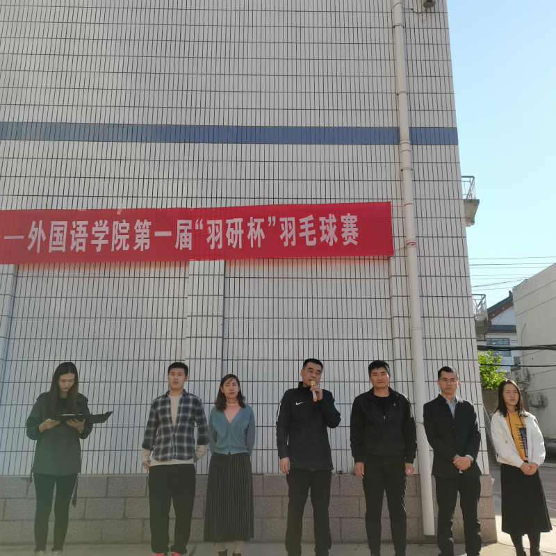 第一届‘羽研杯’羽毛球赛”开幕式。出席本次开幕式的有学院党委书记费沂涛老师,院长助理邢加新老师,学院教工党支部委员伊纪昌老师,研究生辅导员毕丽晓老师,研究生会副主席王婉婉和比赛总裁判长王仁杰。此次开幕式由研究生会文体部部长田立辉主持,由bet365
