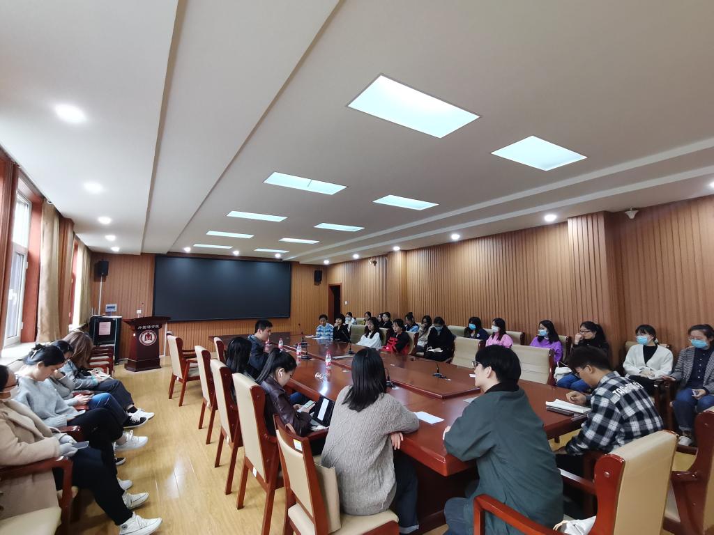 在外语系楼206会议室召开2019级、2020级研究生班会。本次会议由研究生辅导员王仁杰主持,线上、线下同步开展,bet365