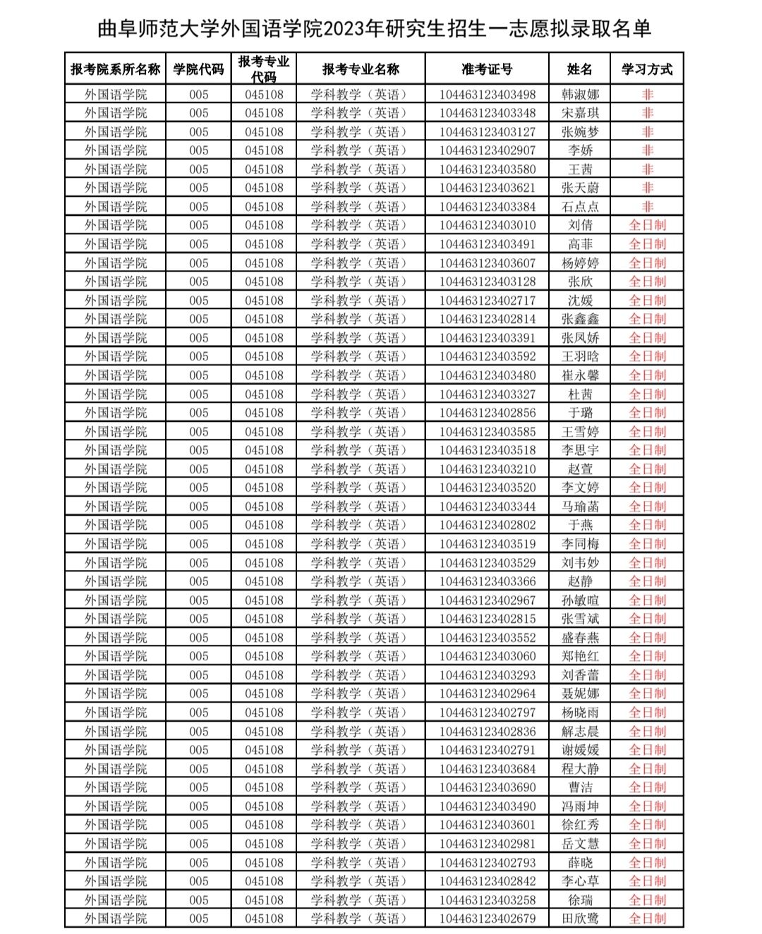 bet365 2023年研究生招生一志愿拟录取名单公示